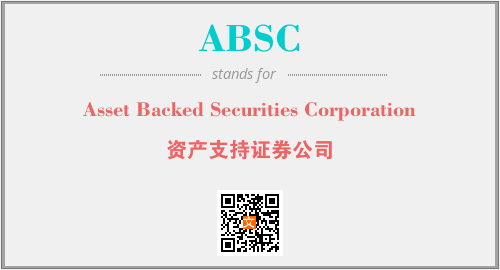 英文缩略词“ABSC”经常作为“Asset Backed Securities Corporation”的英文缩写来使用,中文表示:“资产支持证券公司”。本文将详细介绍英文缩写词ABSC所代表英文单词,其对应的中文拼音、详细解释以及在英语中的流行度。此外,还有关于缩略词ABSC的分类、应用领域及相关应用示例等。