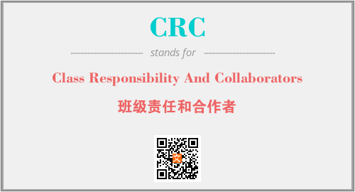 上述内容是“Class Responsibility And Collaborators”作为“CRC”的缩写,解释为“班级责任和合作者”时的信息,以及英文缩略词CRC所代表的英文单词,其对应的中文拼音、详细解释以及在英文中的流行度和相关分类、应用领域及应用示例等。
