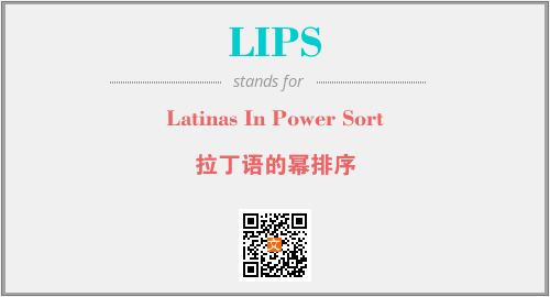 上述内容是“Latinas In Power Sort”作为“LIPS”的缩写,解释为“拉丁语的幂排序”时的信息,以及英文缩略词LIPS所代表的英文单词,其对应的中文拼音、详细解释以及在英文中的流行度和相关分类、应用领域及应用示例等。