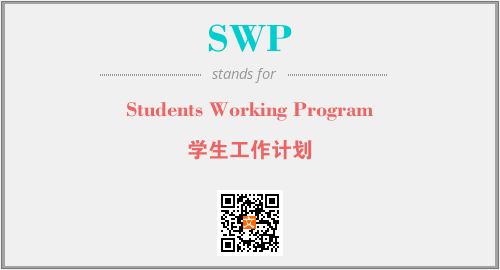 英文缩略词“SWP”经常作为“Students Working Program”的英文缩写来使用,中文表示:“学生工作计划”。本文将详细介绍英文缩写词SWP所代表英文单词,其对应的中文拼音、详细解释以及在英语中的流行度。此外,还有关于缩略词SWP的分类、应用领域及相关应用示例等。