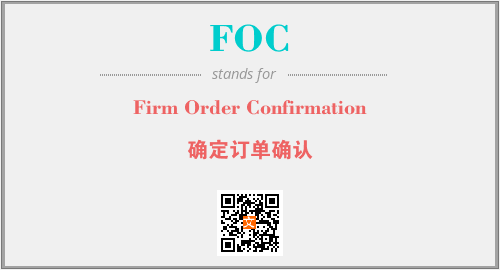 上述内容是“Firm Order Confirmation”作为“FOC”的缩写,解释为“确定订单确认”时的信息,以及英文缩略词FOC所代表的英文单词,其对应的中文拼音、详细解释以及在英文中的流行度和相关分类、应用领域及应用示例等。