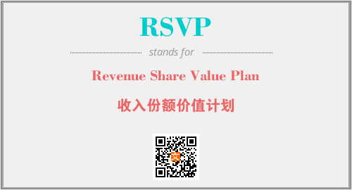 上述内容是“Revenue Share Value Plan”作为“RSVP”的缩写,解释为“收入份额价值计划”时的信息,以及英文缩略词RSVP所代表的英文单词,其对应的中文拼音、详细解释以及在英文中的流行度和相关分类、应用领域及应用示例等。