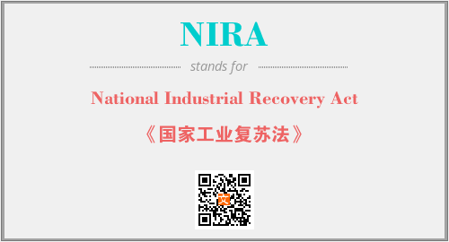 上述内容是“National Industrial Recovery Act”作为“NIRA”的缩写,解释为“《国家工业复苏法》”时的信息,以及英文缩略词NIRA所代表的英文单词,其对应的中文拼音、详细解释以及在英文中的流行度和相关分类、应用领域及应用示例等。