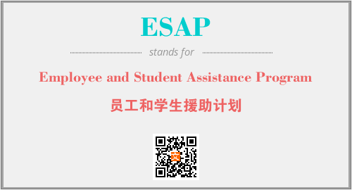 上述内容是“Employee and Student Assistance Program”作为“ESAP”的缩写,解释为“员工和学生援助计划”时的信息,以及英文缩略词ESAP所代表的英文单词,其对应的中文拼音、详细解释以及在英文中的流行度和相关分类、应用领域及应用示例等。