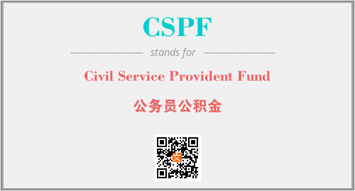 上述内容是“Civil Service Provident Fund”作为“CSPF”的缩写,解释为“公务员公积金”时的信息,以及英文缩略词CSPF所代表的英文单词,其对应的中文拼音、详细解释以及在英文中的流行度和相关分类、应用领域及应用示例等。