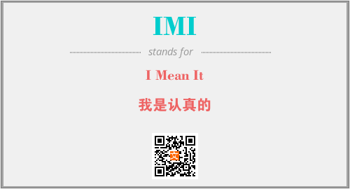 以上为I Mean It英文缩略词IMI的中文解释,以及该英文缩写在英语的流行度、分类和应用领域方面的信息。