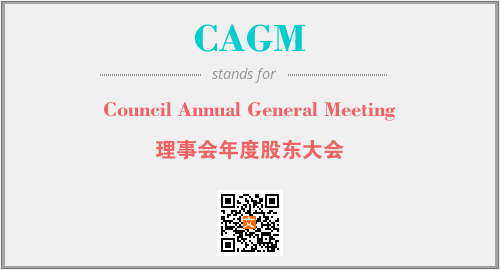 英文缩略词“CAGM”经常作为“Council Annual General Meeting”的英文缩写来使用,中文表示:“理事会年度股东大会”。本文将详细介绍英文缩写词CAGM所代表英文单词,其对应的中文拼音、详细解释以及在英语中的流行度。此外,还有关于缩略词CAGM的分类、应用领域及相关应用示例等。
