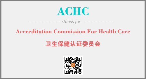 上述内容是“Accreditation Commission For Health Care”作为“ACHC”的缩写,解释为“卫生保健认证委员会”时的信息,以及英文缩略词ACHC所代表的英文单词,其对应的中文拼音、详细解释以及在英文中的流行度和相关分类、应用领域及应用示例等。