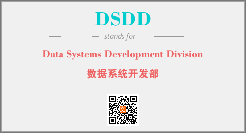 上述内容是“Data Systems Development Division”作为“DSDD”的缩写,解释为“数据系统开发部”时的信息,以及英文缩略词DSDD所代表的英文单词,其对应的中文拼音、详细解释以及在英文中的流行度和相关分类、应用领域及应用示例等。