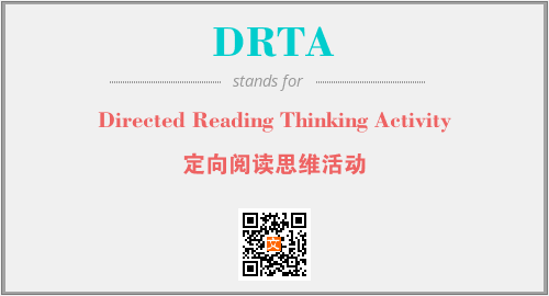 英文缩略词“DRTA”经常作为“Directed Reading Thinking Activity”的英文缩写来使用,中文表示:“定向阅读思维活动”。本文将详细介绍英文缩写词DRTA所代表英文单词,其对应的中文拼音、详细解释以及在英语中的流行度。此外,还有关于缩略词DRTA的分类、应用领域及相关应用示例等。