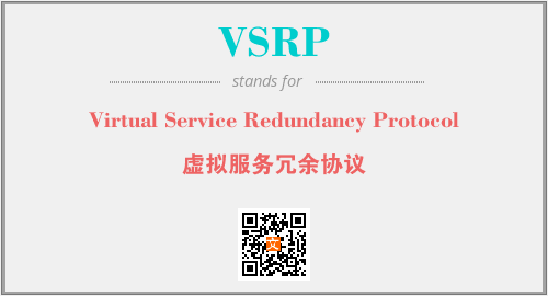 上述内容是“Virtual Service Redundancy Protocol”作为“VSRP”的缩写,解释为“虚拟服务冗余协议”时的信息,以及英文缩略词VSRP所代表的英文单词,其对应的中文拼音、详细解释以及在英文中的流行度和相关分类、应用领域及应用示例等。