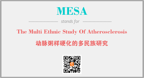 以上为The Multi Ethnic Study Of Atherosclerosis英文缩略词MESA的中文解释,以及该英文缩写在英语的流行度、分类和应用领域方面的信息。