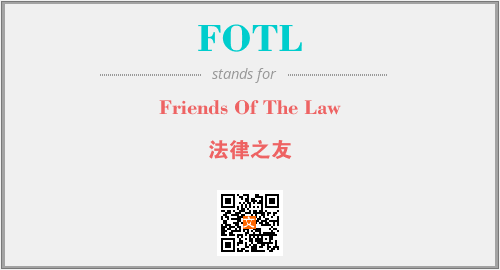 上述内容是“Friends Of The Law”作为“FOTL”的缩写,解释为“法律之友”时的信息,以及英文缩略词FOTL所代表的英文单词,其对应的中文拼音、详细解释以及在英文中的流行度和相关分类、应用领域及应用示例等。