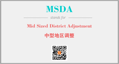 上述内容是“Mid Sized District Adjustment”作为“MSDA”的缩写,解释为“中型地区调整”时的信息,以及英文缩略词MSDA所代表的英文单词,其对应的中文拼音、详细解释以及在英文中的流行度和相关分类、应用领域及应用示例等。
