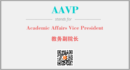 上述内容是“Academic Affairs Vice President”作为“AAVP”的缩写,解释为“教务副院长”时的信息,以及英文缩略词AAVP所代表的英文单词,其对应的中文拼音、详细解释以及在英文中的流行度和相关分类、应用领域及应用示例等。