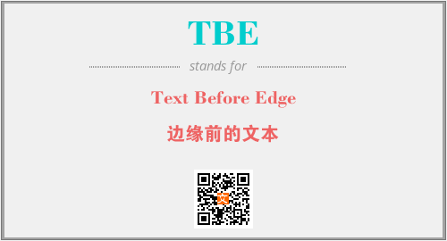英文缩略词“TBE”经常作为“Text Before Edge”的英文缩写来使用,中文表示:“边缘前的文本”。本文将详细介绍英文缩写词TBE所代表英文单词,其对应的中文拼音、详细解释以及在英语中的流行度。此外,还有关于缩略词TBE的分类、应用领域及相关应用示例等。