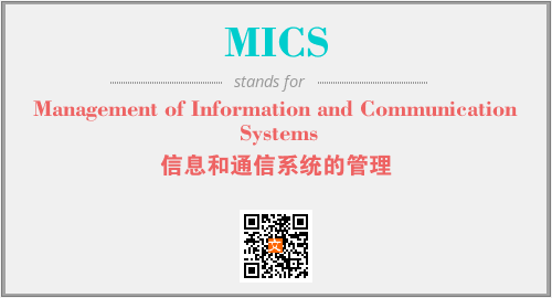 英文缩略词“MICS”经常作为“Management of Information and Communication Systems”的英文缩写来使用,中文表示:“信息和通信系统的管理”。本文将详细介绍英文缩写词MICS所代表英文单词,其对应的中文拼音、详细解释以及在英语中的流行度。此外,还有关于缩略词MICS的分类、应用领域及相关应用示例等。