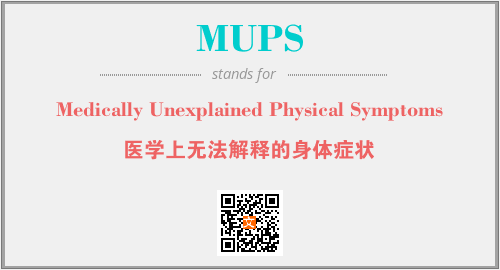 英文缩略词“MUPS”经常作为“Medically Unexplained Physical Symptoms”的英文缩写来使用,中文表示:“医学上无法解释的身体症状”。本文将详细介绍英文缩写词MUPS所代表英文单词,其对应的中文拼音、详细解释以及在英语中的流行度。此外,还有关于缩略词MUPS的分类、应用领域及相关应用示例等。