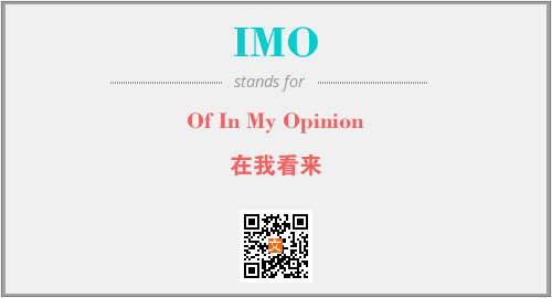 以上为Of In My Opinion英文缩略词IMO的中文解释,以及该英文缩写在英语的流行度、分类和应用领域方面的信息。