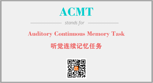 以上为Auditory Continuous Memory Task英文缩略词ACMT的中文解释,以及该英文缩写在英语的流行度、分类和应用领域方面的信息。