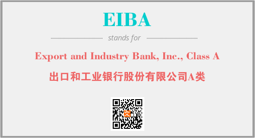 以上为Export and Industry Bank, Inc., Class A英文缩略词EIBA的中文解释,以及该英文缩写在英语的流行度、分类和应用领域方面的信息。