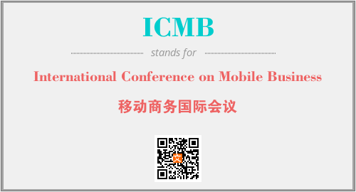 英文缩略词“ICMB”经常作为“International Conference on Mobile Business”的英文缩写来使用,中文表示:“移动商务国际会议”。本文将详细介绍英文缩写词ICMB所代表英文单词,其对应的中文拼音、详细解释以及在英语中的流行度。此外,还有关于缩略词ICMB的分类、应用领域及相关应用示例等。