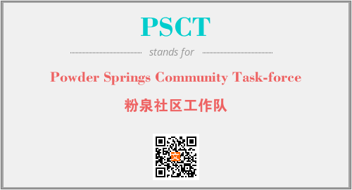 上述内容是“Powder Springs Community Task-force”作为“PSCT”的缩写,解释为“粉泉社区工作队”时的信息,以及英文缩略词PSCT所代表的英文单词,其对应的中文拼音、详细解释以及在英文中的流行度和相关分类、应用领域及应用示例等。