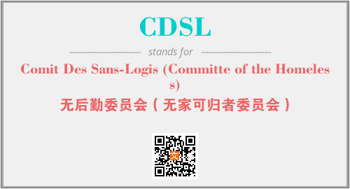 英文缩略词“CDSL”经常作为“Comit Des Sans-Logis (Committe of the Homeless)”的英文缩写来使用,中文表示:“无后勤委员会(无家可归者委员会)”。本文将详细介绍英文缩写词CDSL所代表英文单词,其对应的中文拼音、详细解释以及在英语中的流行度。此外,还有关于缩略词CDSL的分类、应用领域及相关应用示例等。