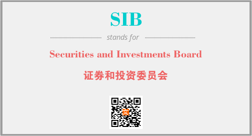 上述内容是“Securities and Investments Board”作为“SIB”的缩写,解释为“证券和投资委员会”时的信息,以及英文缩略词SIB所代表的英文单词,其对应的中文拼音、详细解释以及在英文中的流行度和相关分类、应用领域及应用示例等。