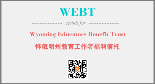 上述内容是“Wyoming Educators Benefit Trust”作为“WEBT”的缩写,解释为“怀俄明州教育工作者福利信托”时的信息,以及英文缩略词WEBT所代表的英文单词,其对应的中文拼音、详细解释以及在英文中的流行度和相关分类、应用领域及应用示例等。