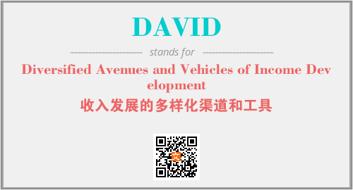上述内容是“Diversified Avenues and Vehicles of Income Development”作为“DAVID”的缩写,解释为“收入发展的多样化渠道和工具”时的信息,以及英文缩略词DAVID所代表的英文单词,其对应的中文拼音、详细解释以及在英文中的流行度和相关分类、应用领域及应用示例等。