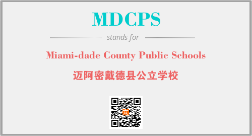 英文缩略词“MDCPS”经常作为“Miami-dade County Public Schools”的英文缩写来使用,中文表示:“迈阿密戴德县公立学校”。本文将详细介绍英文缩写词MDCPS所代表英文单词,其对应的中文拼音、详细解释以及在英语中的流行度。此外,还有关于缩略词MDCPS的分类、应用领域及相关应用示例等。