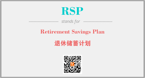 上述内容是“Retirement Savings Plan”作为“RSP”的缩写,解释为“退休储蓄计划”时的信息,以及英文缩略词RSP所代表的英文单词,其对应的中文拼音、详细解释以及在英文中的流行度和相关分类、应用领域及应用示例等。