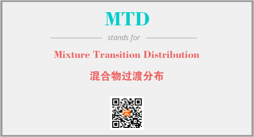 上述内容是“Mixture Transition Distribution”作为“MTD”的缩写,解释为“混合物过渡分布”时的信息,以及英文缩略词MTD所代表的英文单词,其对应的中文拼音、详细解释以及在英文中的流行度和相关分类、应用领域及应用示例等。