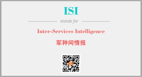 上述内容是“Inter-Services Intelligence”作为“ISI”的缩写,解释为“军种间情报”时的信息,以及英文缩略词ISI所代表的英文单词,其对应的中文拼音、详细解释以及在英文中的流行度和相关分类、应用领域及应用示例等。