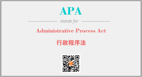 以上为Administrative Process Act英文缩略词APA的中文解释,以及该英文缩写在英语的流行度、分类和应用领域方面的信息。