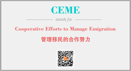 英文缩略词“CEME”经常作为“Cooperative Efforts to Manage Emigration”的英文缩写来使用,中文表示:“管理移民的合作努力”。本文将详细介绍英文缩写词CEME所代表英文单词,其对应的中文拼音、详细解释以及在英语中的流行度。此外,还有关于缩略词CEME的分类、应用领域及相关应用示例等。