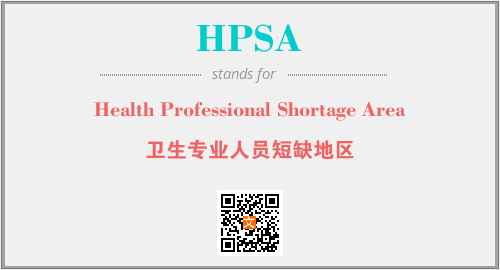 上述内容是“Health Professional Shortage Area”作为“HPSA”的缩写,解释为“卫生专业人员短缺地区”时的信息,以及英文缩略词HPSA所代表的英文单词,其对应的中文拼音、详细解释以及在英文中的流行度和相关分类、应用领域及应用示例等。