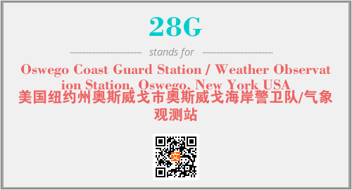 英文缩略词“28G”经常作为“Oswego Coast Guard Station / Weather Observation Station, Oswego, New York USA”的英文缩写来使用,中文表示:“美国纽约州奥斯威戈市奥斯威戈海岸警卫队/气象观测站”。本文将详细介绍英文缩写词28G所代表英文单词,其对应的中文拼音、详细解释以及在英语中的流行度。此外,还有关于缩略词28G的分类、应用领域及相关应用示例等。