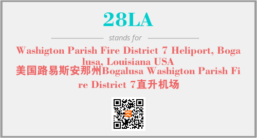 上述内容是“Washigton Parish Fire District 7 Heliport, Bogalusa, Louisiana USA”作为“28LA”的缩写,解释为“美国路易斯安那州Bogalusa Washigton Parish Fire District 7直升机场”时的信息,以及英文缩略词28LA所代表的英文单词,其对应的中文拼音、详细解释以及在英文中的流行度和相关分类、应用领域及应用示例等。