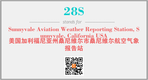 上述内容是“Sunnyvale Aviation Weather Reporting Station, Sunnyvale, California USA”作为“28S”的缩写,解释为“美国加利福尼亚州桑尼维尔市桑尼维尔航空气象报告站”时的信息,以及英文缩略词28S所代表的英文单词,其对应的中文拼音、详细解释以及在英文中的流行度和相关分类、应用领域及应用示例等。