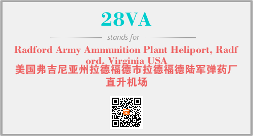 以上为Radford Army Ammunition Plant Heliport, Radford, Virginia USA英文缩略词28VA的中文解释,以及该英文缩写在英语的流行度、分类和应用领域方面的信息。