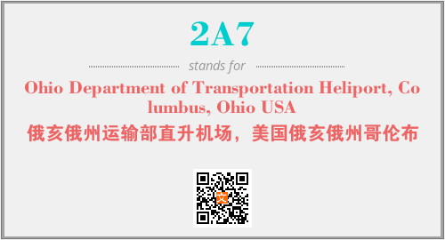 上述内容是“Ohio Department of Transportation Heliport, Columbus, Ohio USA”作为“2A7”的缩写,解释为“俄亥俄州运输部直升机场,美国俄亥俄州哥伦布”时的信息,以及英文缩略词2A7所代表的英文单词,其对应的中文拼音、详细解释以及在英文中的流行度和相关分类、应用领域及应用示例等。
