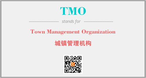 上述内容是“Town Management Organization”作为“TMO”的缩写,解释为“城镇管理机构”时的信息,以及英文缩略词TMO所代表的英文单词,其对应的中文拼音、详细解释以及在英文中的流行度和相关分类、应用领域及应用示例等。