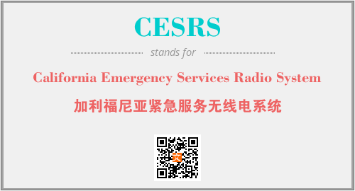 上述内容是“California Emergency Services Radio System”作为“CESRS”的缩写,解释为“加利福尼亚紧急服务无线电系统”时的信息,以及英文缩略词CESRS所代表的英文单词,其对应的中文拼音、详细解释以及在英文中的流行度和相关分类、应用领域及应用示例等。