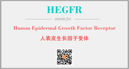 上述内容是“Human Epidermal Growth Factor Receptor”作为“HEGFR”的缩写,解释为“人表皮生长因子受体”时的信息,以及英文缩略词HEGFR所代表的英文单词,其对应的中文拼音、详细解释以及在英文中的流行度和相关分类、应用领域及应用示例等。