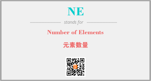 上述内容是“Number of Elements”作为“NE”的缩写,解释为“元素数量”时的信息,以及英文缩略词NE所代表的英文单词,其对应的中文拼音、详细解释以及在英文中的流行度和相关分类、应用领域及应用示例等。