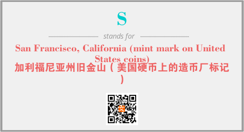 上述内容是“San Francisco, California (mint mark on United States coins)”作为“S”的缩写,解释为“加利福尼亚州旧金山(美国硬币上的造币厂标记)”时的信息,以及英文缩略词S所代表的英文单词,其对应的中文拼音、详细解释以及在英文中的流行度和相关分类、应用领域及应用示例等。