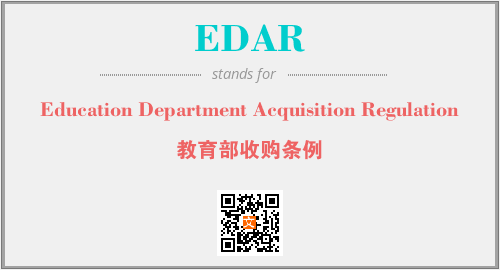 上述内容是“Education Department Acquisition Regulation”作为“EDAR”的缩写,解释为“教育部收购条例”时的信息,以及英文缩略词EDAR所代表的英文单词,其对应的中文拼音、详细解释以及在英文中的流行度和相关分类、应用领域及应用示例等。