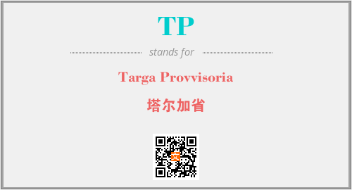 上述内容是“Targa Provvisoria”作为“TP”的缩写,解释为“塔尔加省”时的信息,以及英文缩略词TP所代表的英文单词,其对应的中文拼音、详细解释以及在英文中的流行度和相关分类、应用领域及应用示例等。